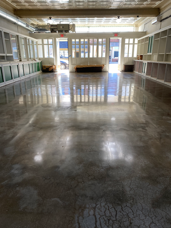Unlike topical products that can be applied, polished concrete has to be ground through multiple grinding steps to achieve any sort of shine. Once polished, we can then apply transparent dyes that absorb into the concrete surface or we can leave it the color it is - natural polishes will always be our favorites. No two floors will ever be the same.